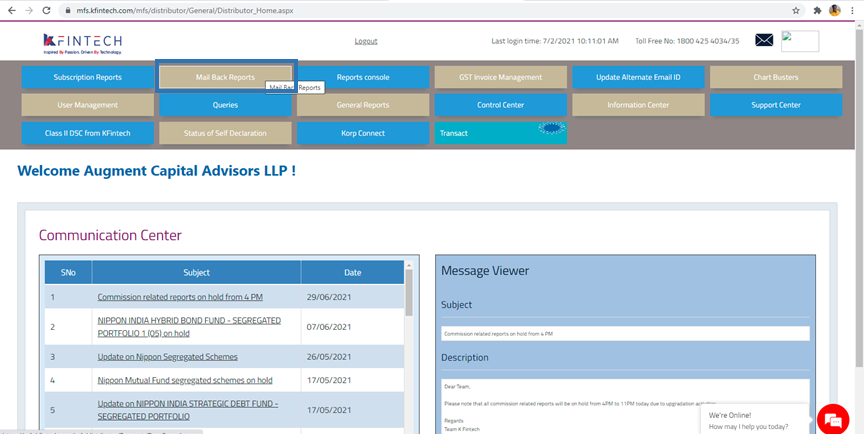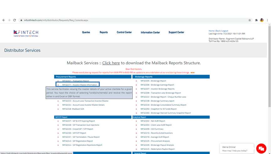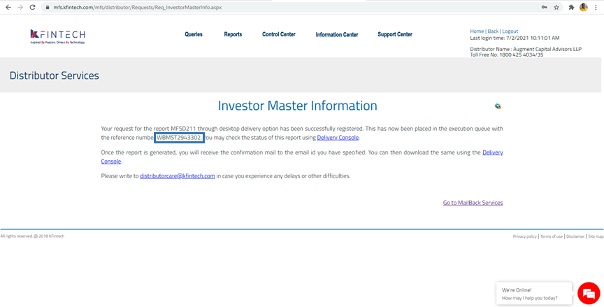 RTA - Karvy Mailback Request - Investor Master Folio Details